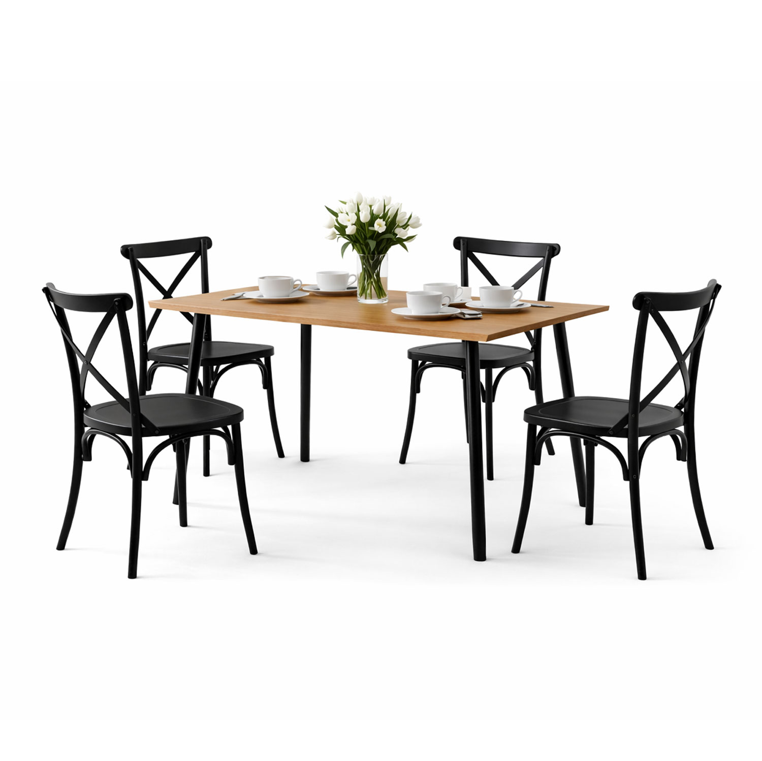 Comedor Rectangular 4p 75x110x70cm Macula + 4 Sillas Ibiza 89x43x46 Negra