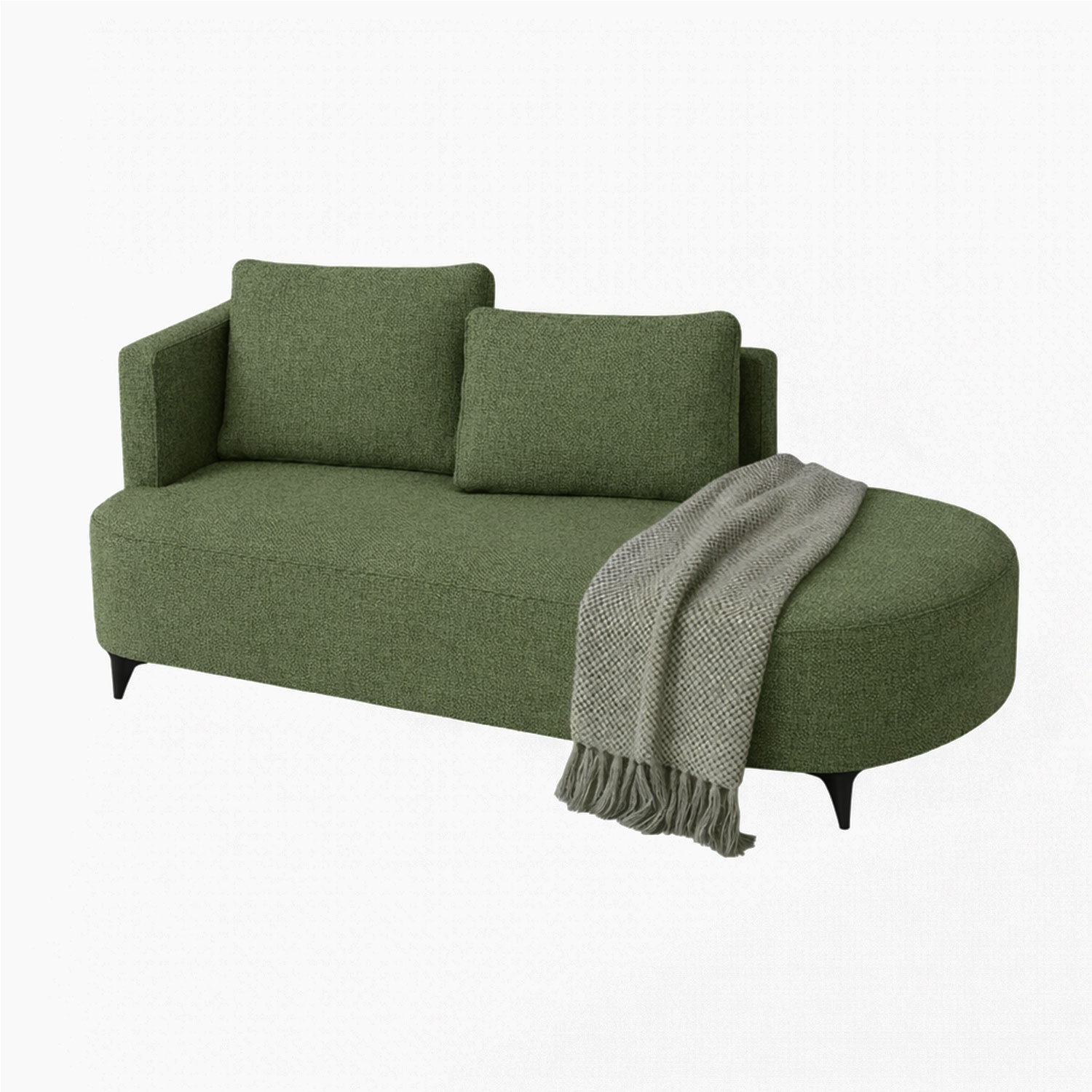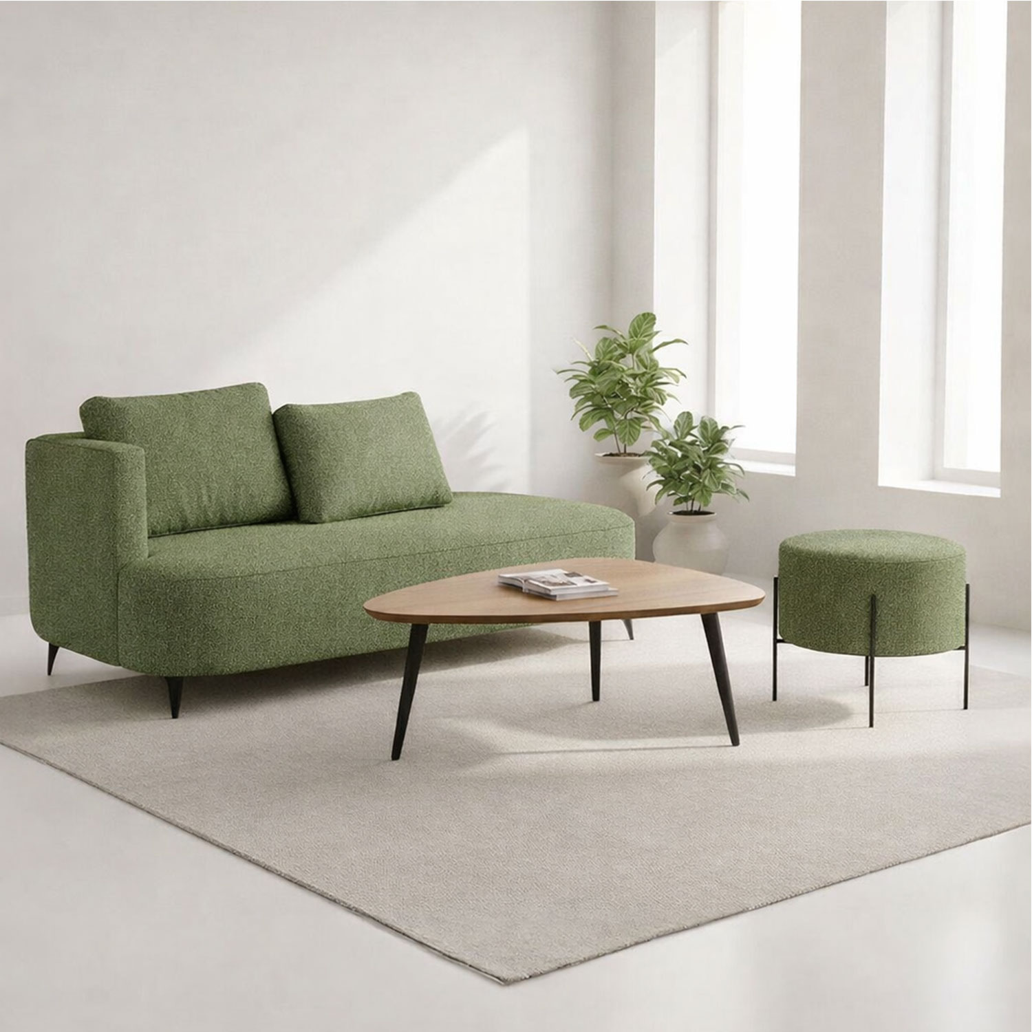 | Juego de Sala Dubai Basic – Color Verde. Estilo, confort y funcionalidad en un solo conjunto. El juego de sala Dubai Basic incluye el elegante sofá curvo Dubái, tapizado en fina tela Verde , con estructura de madera natural y espuma de alta densidad que ofrece máxima comodidad. Sus patas metálicas en color negro aportan un toque moderno y sofisticado y completa el set una mesa de centro modelo Tik y un puff a juego, perfectos para dar armonía y practicidad a tu espacio. Ideal para salas contemporáneas que buscan diseño y confort sin esfuerzo.