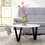 Mesa de centro redonda blanca pata metálica. Diseño para amenizar su hogar u oficina. Hecho en Colombia.