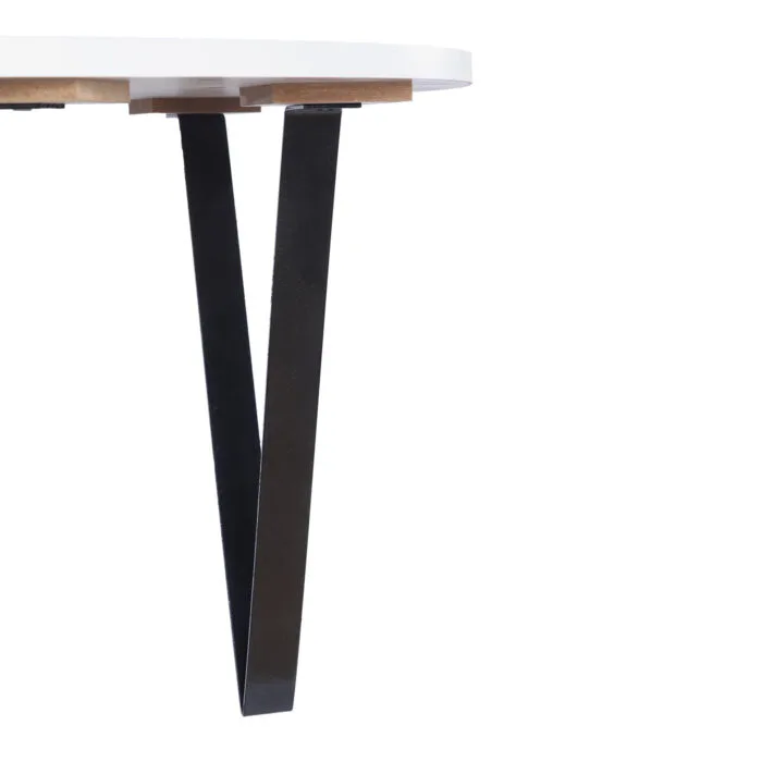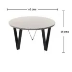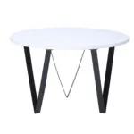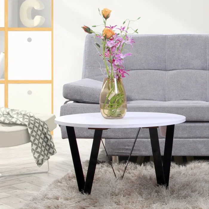 Mesa De Centro moderna redonda fabricada en melamina de 15 mm color blanco con protección antimicrobiana al 99.9% y patas metálicas con pintura electroestática.