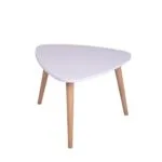 Set de Mesas Triangulares Blanca en melamina 15 mm con protección antimicrobiana al 99.9% y patas en torneadas en madera natural.