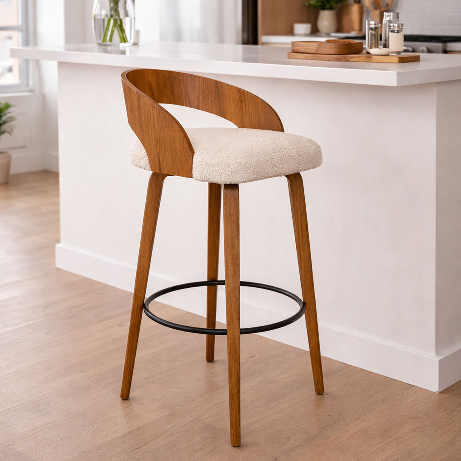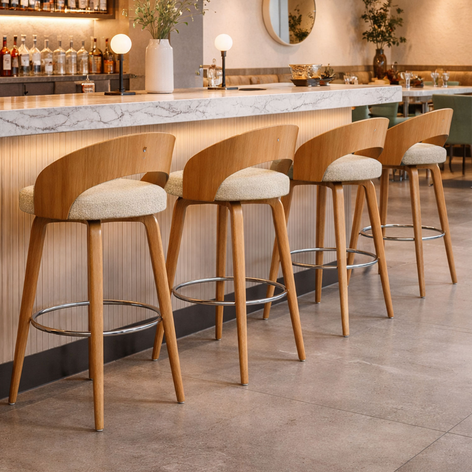 | Set Silla Bar Odet de diseño moderno y estilo natural, elaborada en madera flor morado seca e inmunizada que garantiza mayor resistencia y durabilidad, con estructura terminada en pintura natural catalizada semimate de poro semiabierto que resalta la belleza de la veta, asiento con espuma de alta densidad que brinda confort y soporte, y tapizado en tono beige que aporta calidez y elegancia, ideal para barras, cocinas o comedores que buscan funcionalidad y diseño sofisticado. Sus Medidas son: Alto: 95 cm Ancho: 44 cm Largo: 42 cm Su garantía es de 1 año. Importante: Este producto NO incluye elementos decorativos ni ambientación y el color presentado en la fotografía es una aproximación al color real. |
