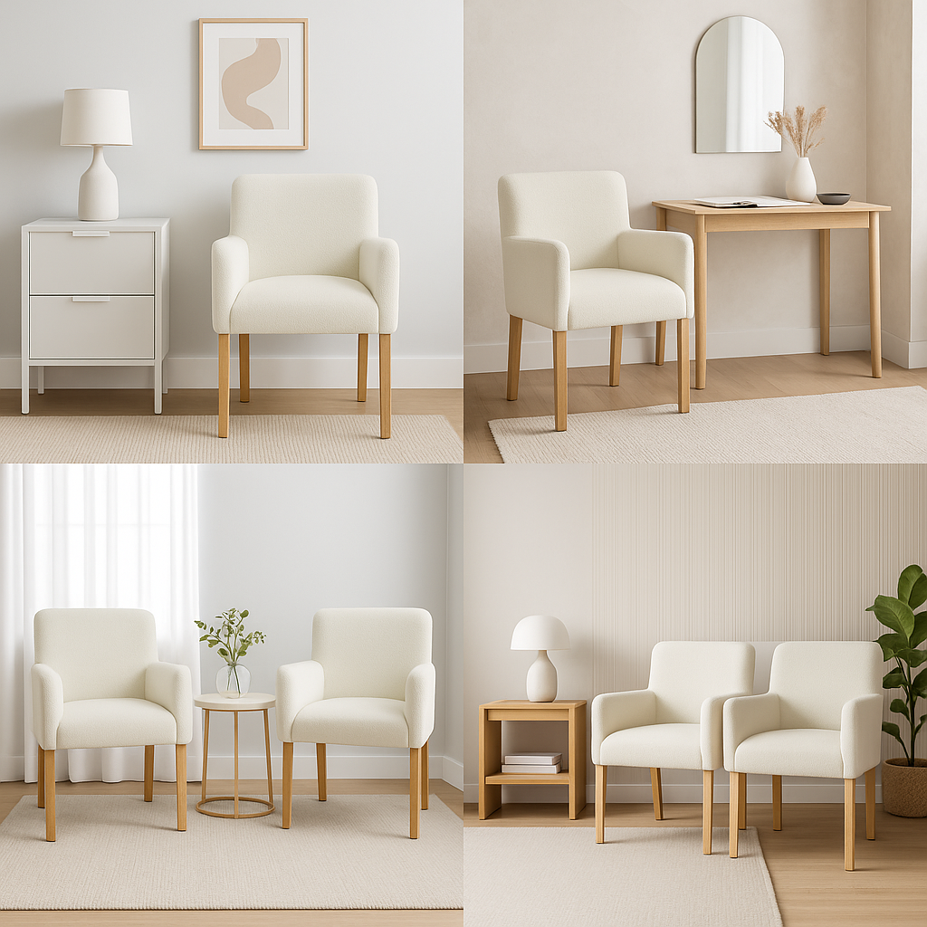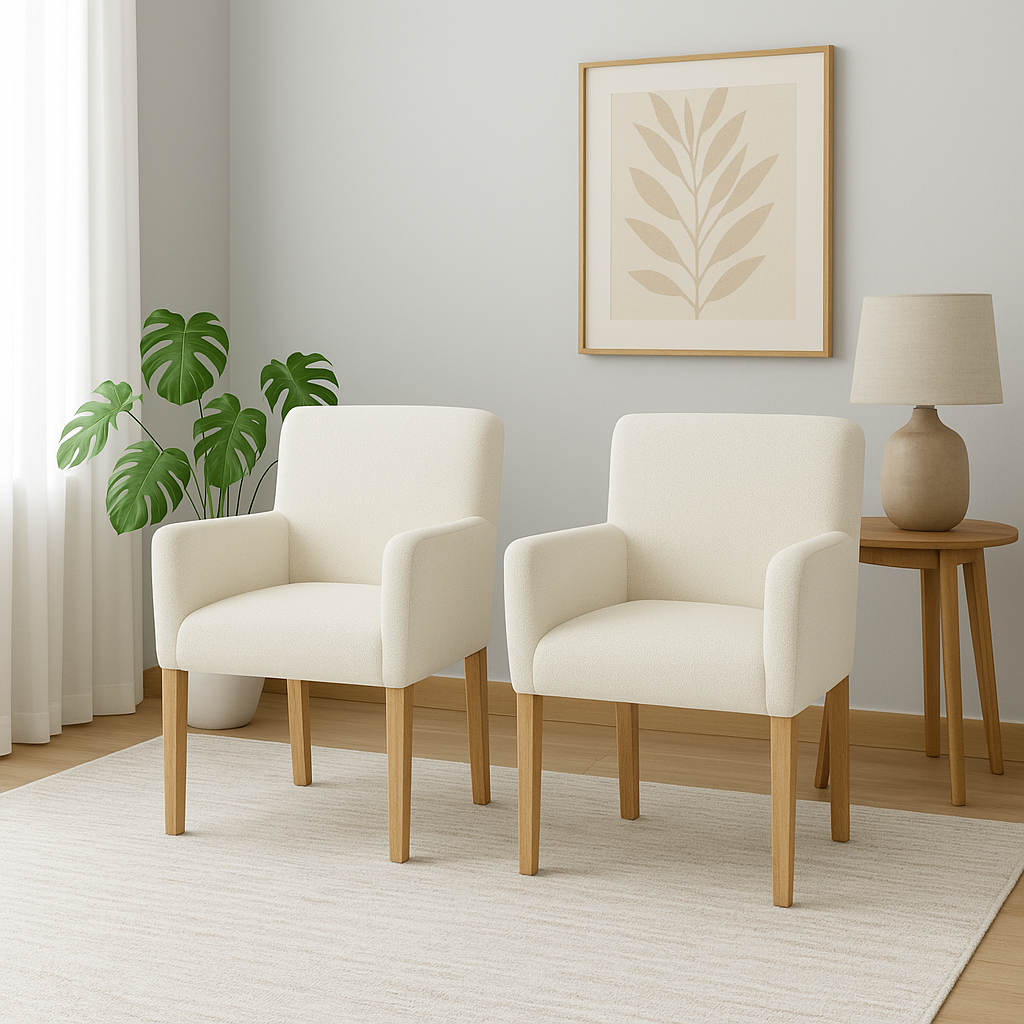 Set x 2 Poltronas (88x59x55cm) Ovejo Beige, estructura en madera natural, espuma de alta densidad, con patas en madera color natural.
