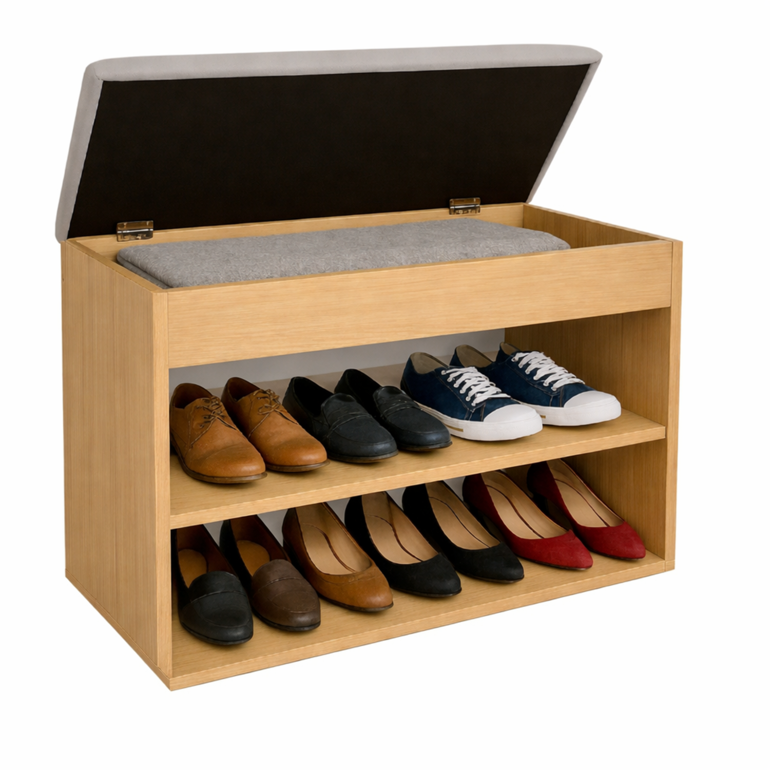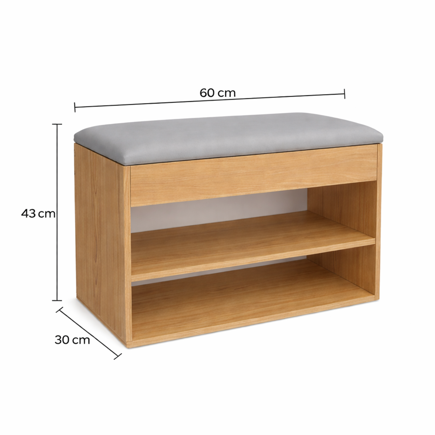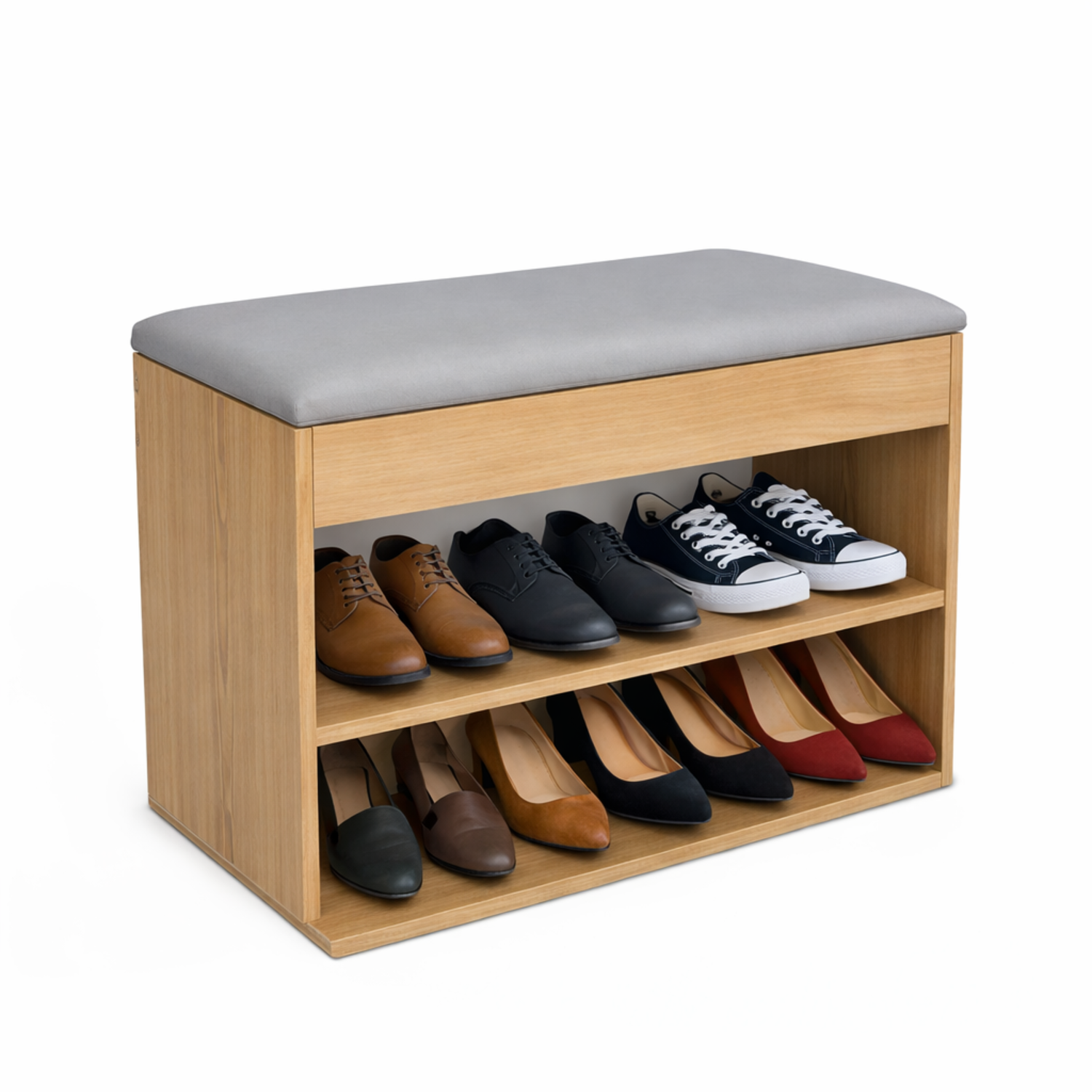 Set x 2 und Mueble Organizador Zapatero (43x60x30) Fresno en Melamina con protección antimicrobiana 99.9%, Tapa tapizada en tela Colors Gris