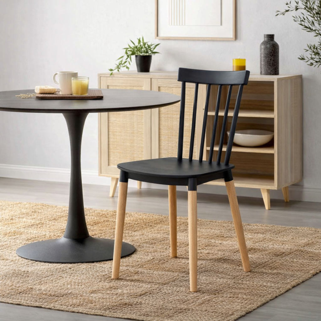 Silla con asiento en polipropileno y patas de madera. Ligera, cómoda y con un estilo natural que transforma cualquier espacio. Su asiento en polipropileno ofrece practicidad y fácil limpieza, mientras las patas de madera aportan calidez y un toque acogedor. Ideal para crear ambientes modernos, frescos y llenos de armonía, tanto en el comedor como en espacios de trabajo o estudio.