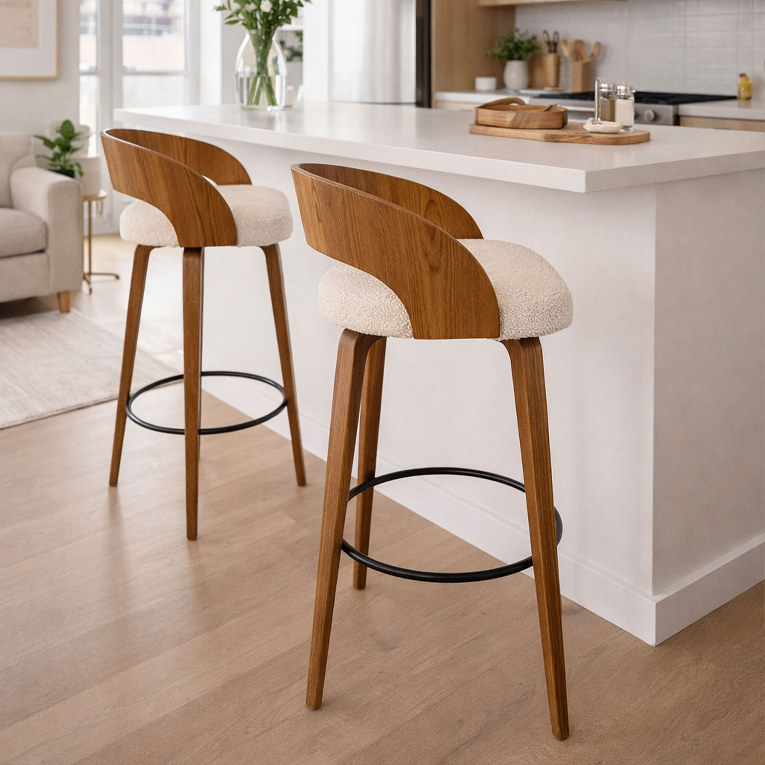| Silla Bar Odet de diseño moderno y estilo natural, elaborada en madera flor morado seca e inmunizada que garantiza mayor resistencia y durabilidad, con estructura terminada en pintura natural catalizada semimate de poro semiabierto que resalta la belleza de la veta, asiento con espuma de alta densidad que brinda confort y soporte, y tapizado en tono beige que aporta calidez y elegancia, ideal para barras, cocinas o comedores que buscan funcionalidad y diseño sofisticado. Sus Medidas son: Alto: 95 cm Ancho: 44 cm Largo: 42 cm Su garantía es de 1 año.Importante: Este producto NO incluye elementos decorativos ni ambientación y el color presentado en la fotografía es una aproximación al color real. |